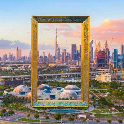 O maior porta retrato do mundo, com vistas impressionantes da Dubai. Revela Dubai em três tempos — o passado tradicional, o presente grandioso e a visão ousada que move o futuro.